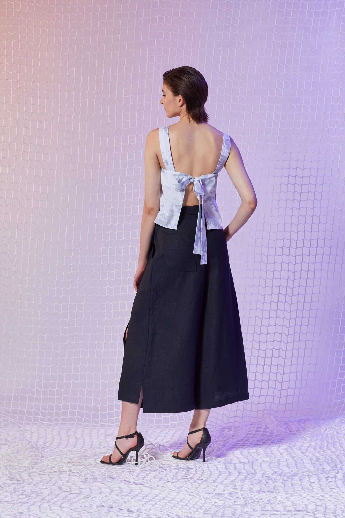 Tanzende Lichtpunkte, das Wasser spiegelt den Himmel, oder spiegelt der Himmel das Wasser? Blau und Grau auf Weiss, ein Spiel aus Licht und Schatten, immer in Bewegung. Einen Rahmen erfährt das Spielerische durch klassisches Schwarz, welches die Lichtpunkte einfängt und im Zaum hält. Die Bahnen sind gezogen, die Regeln klar, business as usual, doch darüber - ein freier, flirrender Tanz, Lichtpunkte der Kreativität, die grosse Leichtigkeit, befreit von allen Zwängen. Finde deinen eigenen Weg, die Füsse am Boden, den Kopf in den Wolken.