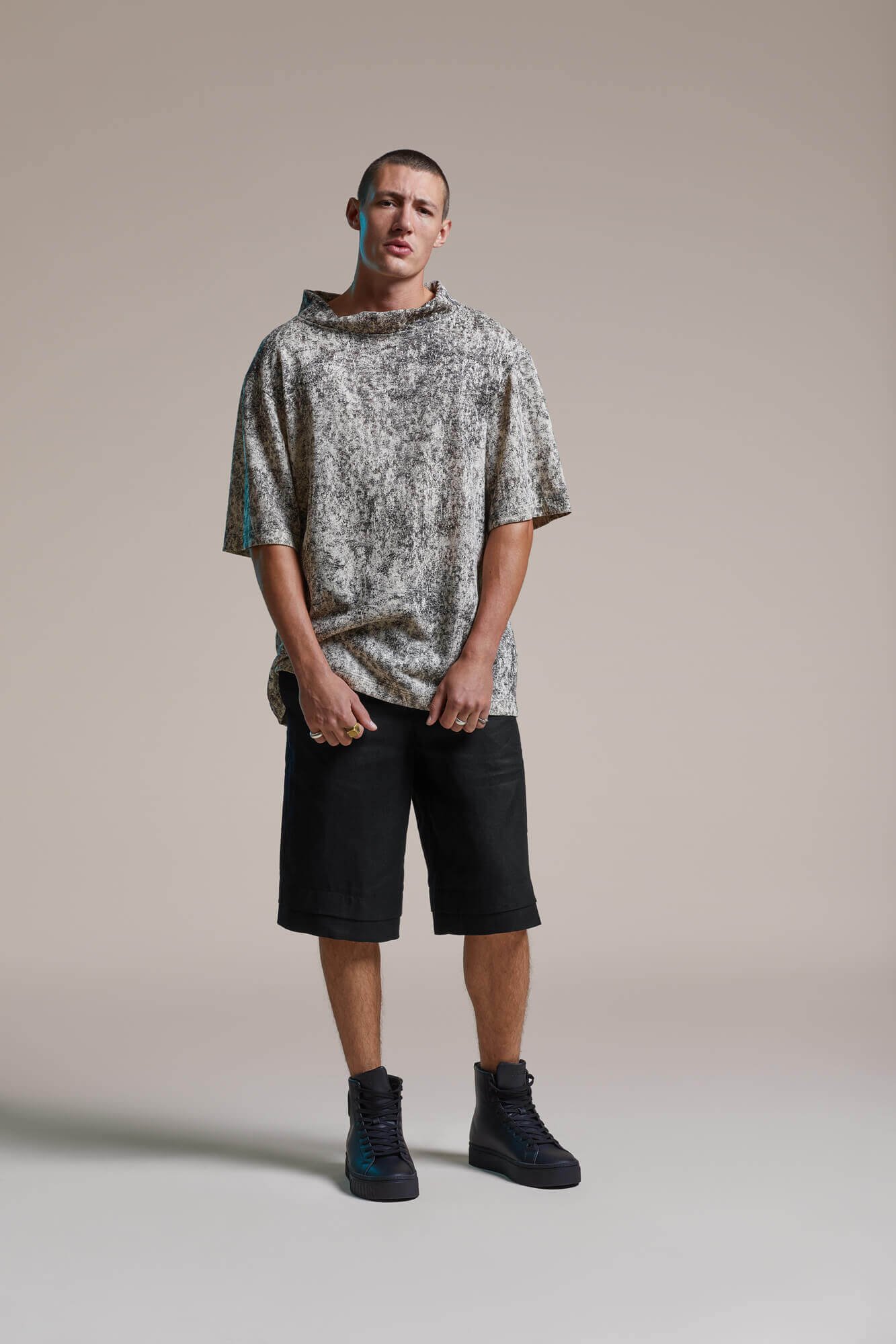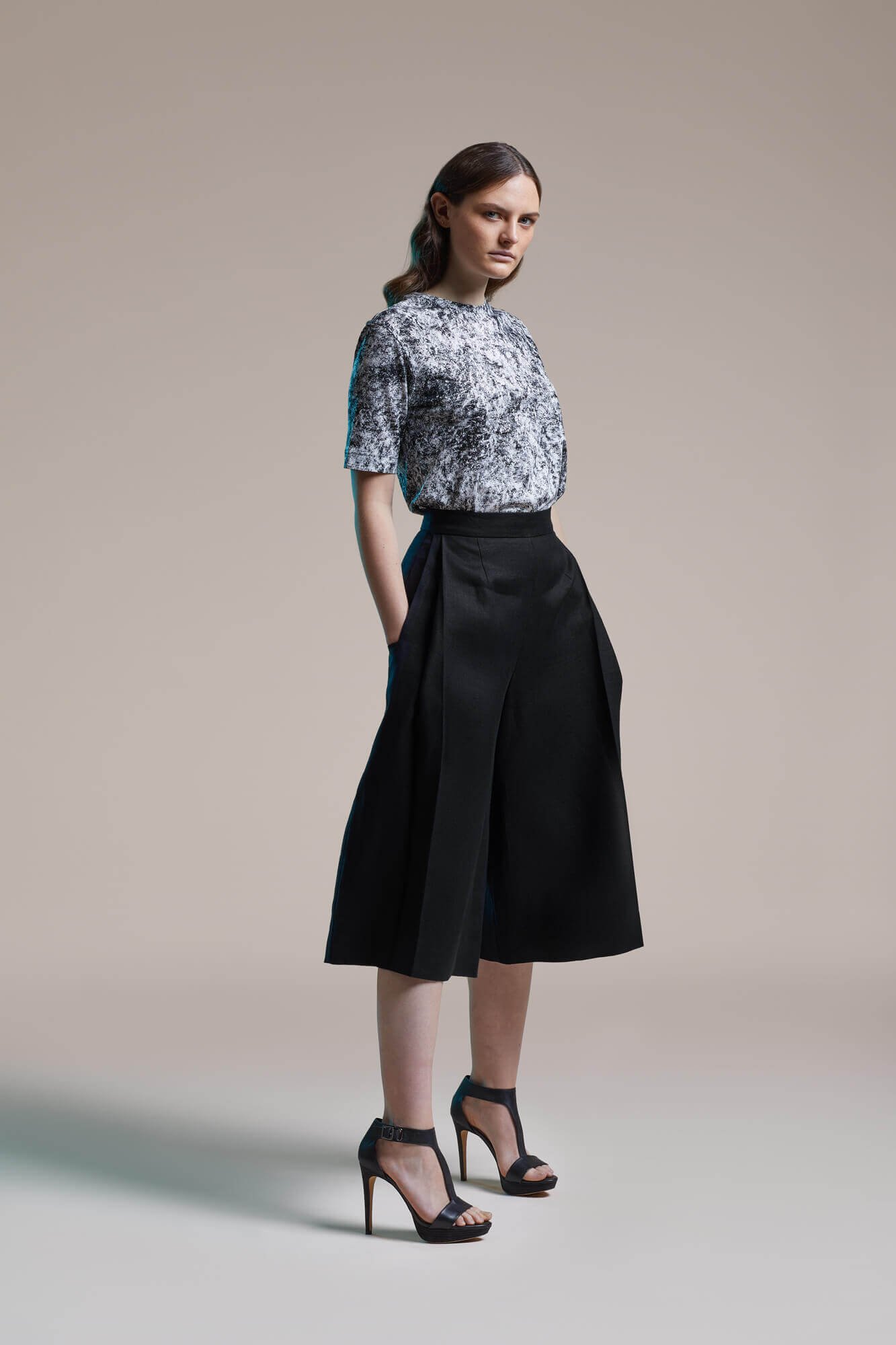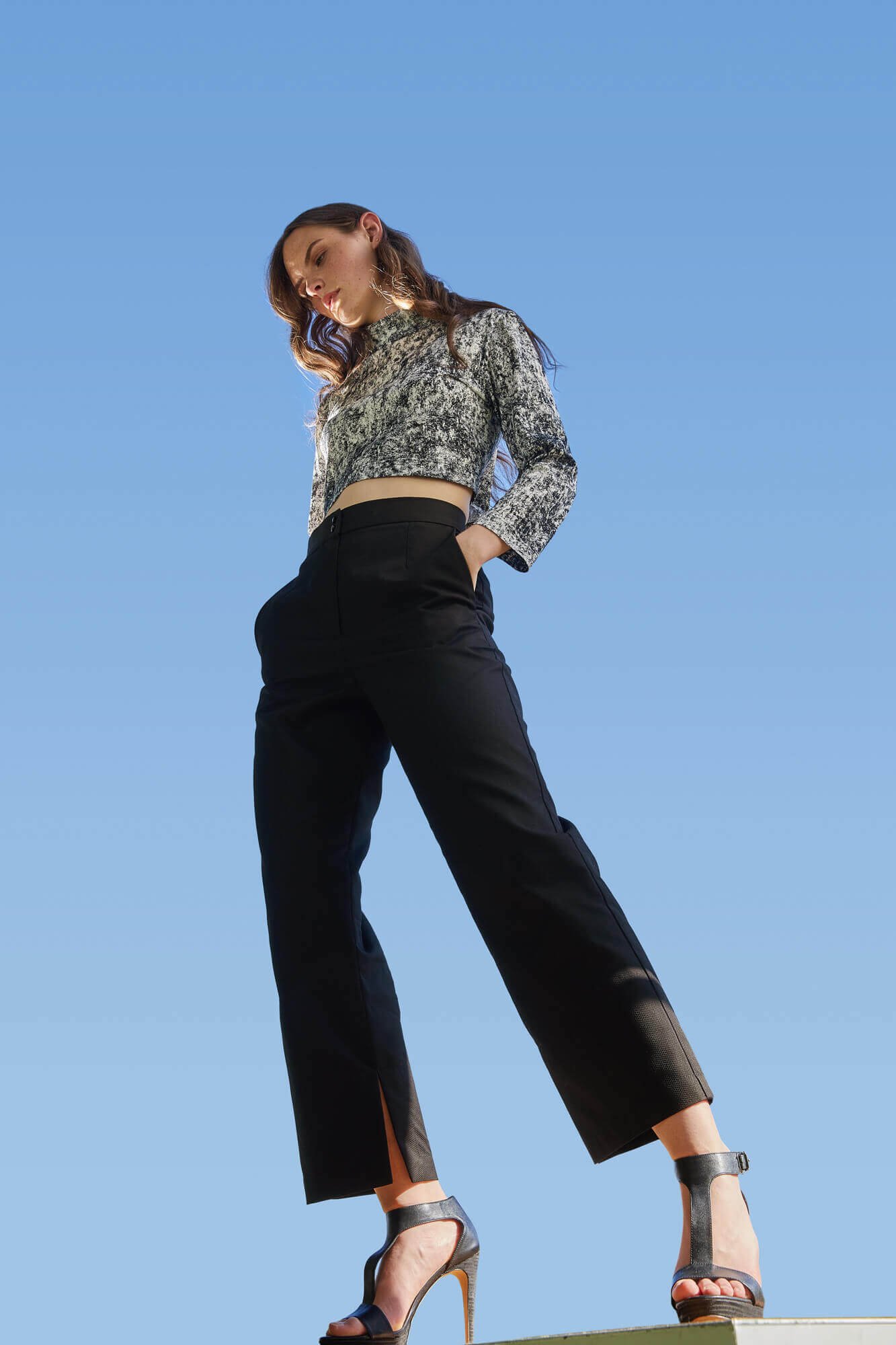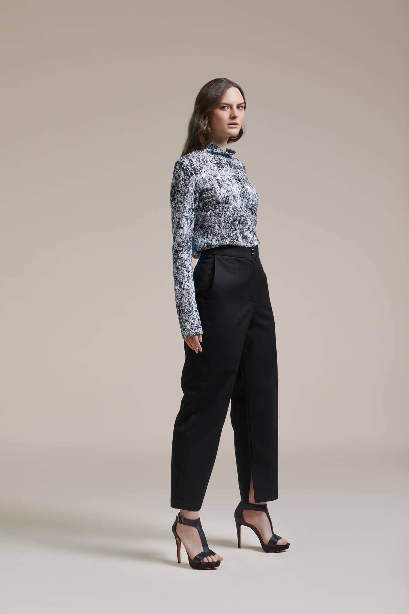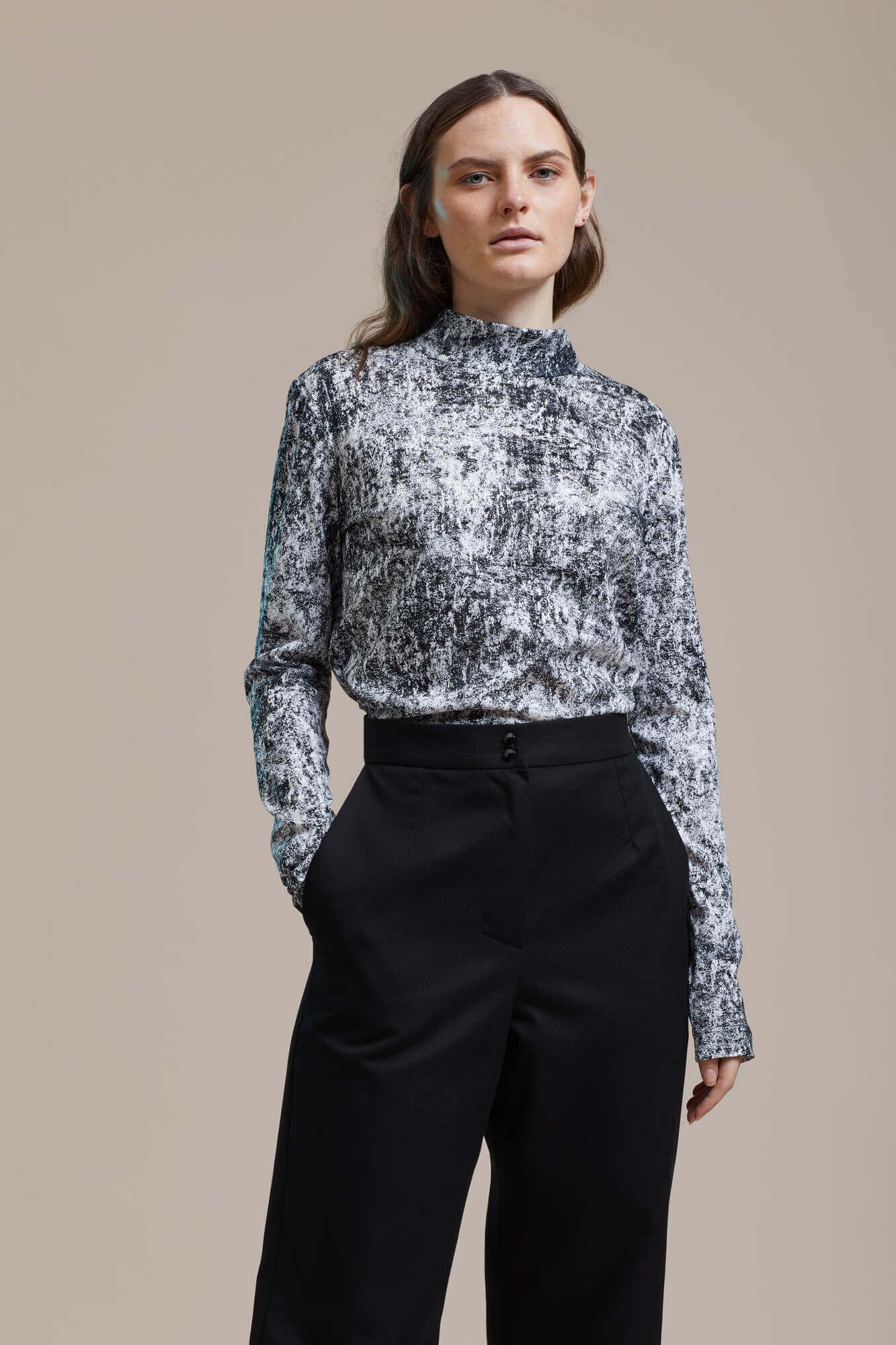 The new collection focuses on the essence, on straight lines and strict forms. And yet, there is a lightness in this recution, a smooth falling, a soft swirl. Next to the strict, classic black, the print reflects the silhouettes of leaves and grasses moved madly my the wind, swirling and light. The lightness forges ahead, in anticipation of summer, the fresh breeze, soon free from all restriction. Ready for freedom, ready to set off, but still reduced - reduced to the essential.
